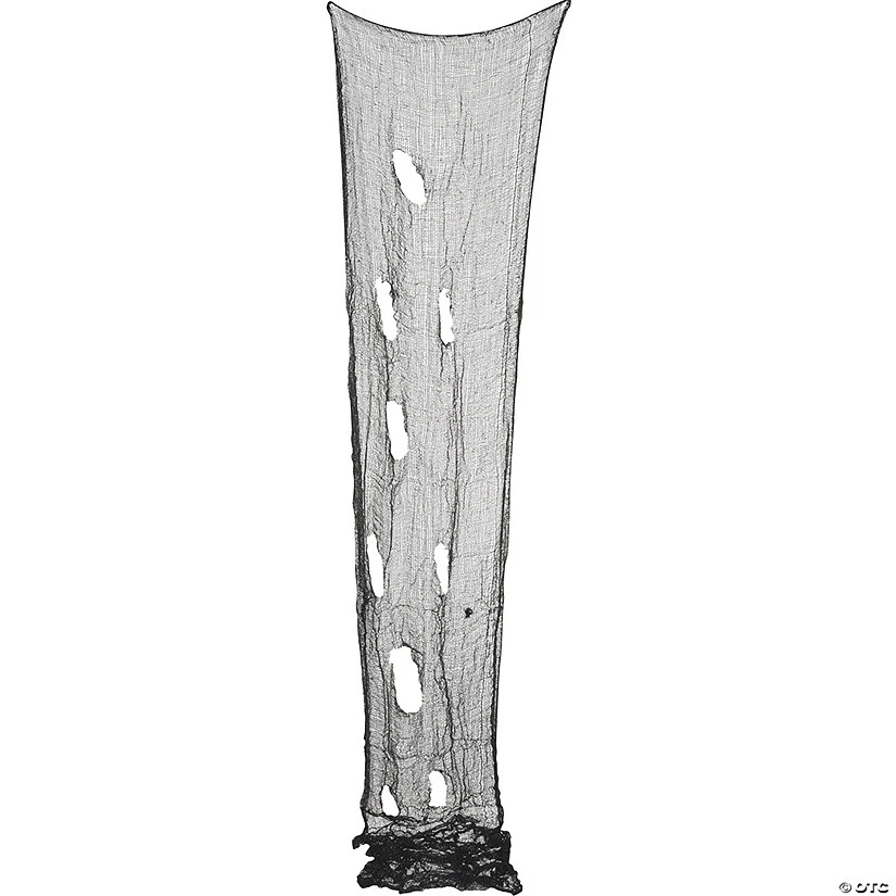 Distressed black fabric measures 36ft by 43in. Make anything look creepy! Use as a table-cover. Hang in a doorway. Great to use as a costume accessory.