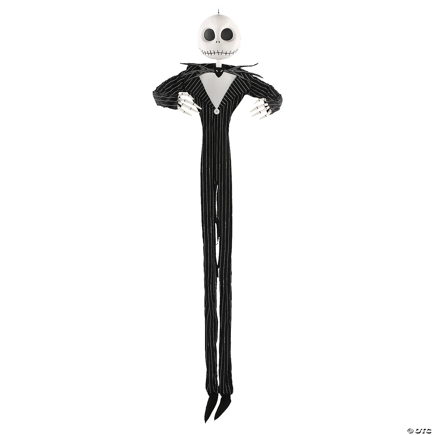 Jack from The Nightmare Before Christmas is dressed in his iconic pin stripe suit and is dying to hang out with you and your friends. This 5 1/2 ft. tall decoration has a hard plastic, 8 inch diameter head with hanging loop and a polyester body with a felt bowtie. The poseable arms allow for custom positioning. This is the ideal Jack Skellington decoration for any Nightmare Before Christmas fan! Use it indoors or in a covered porch area. © Disney