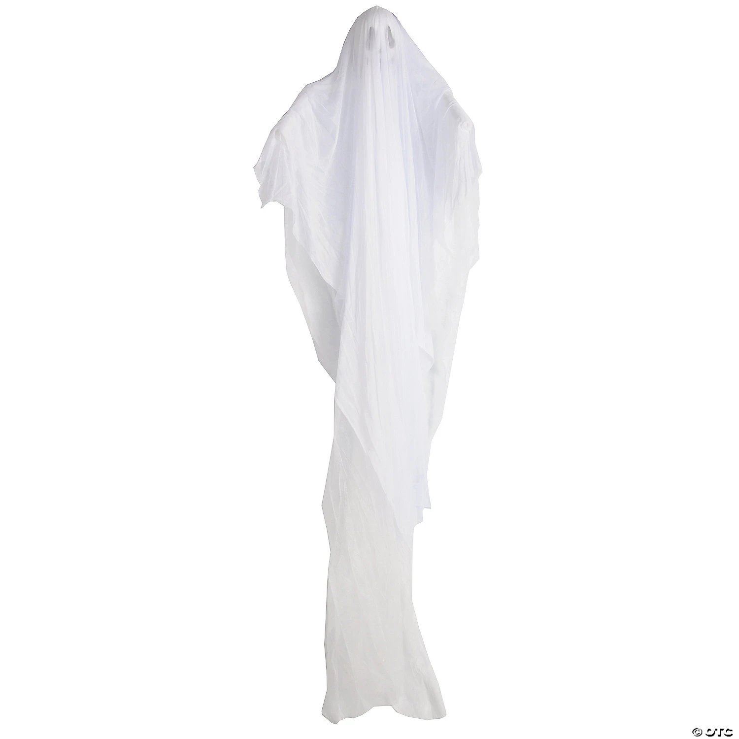 Ghost 7 footA shrouded ghoul haunts the living. Ghostly figure has a long white robe with draping white fabric and a ghostly face showing through the fabric! With each breath of wind, the figure moves in an eerie way! Poseable arms reach out as if to get you! Prop measures 7 feet tall and 32″ wide.
