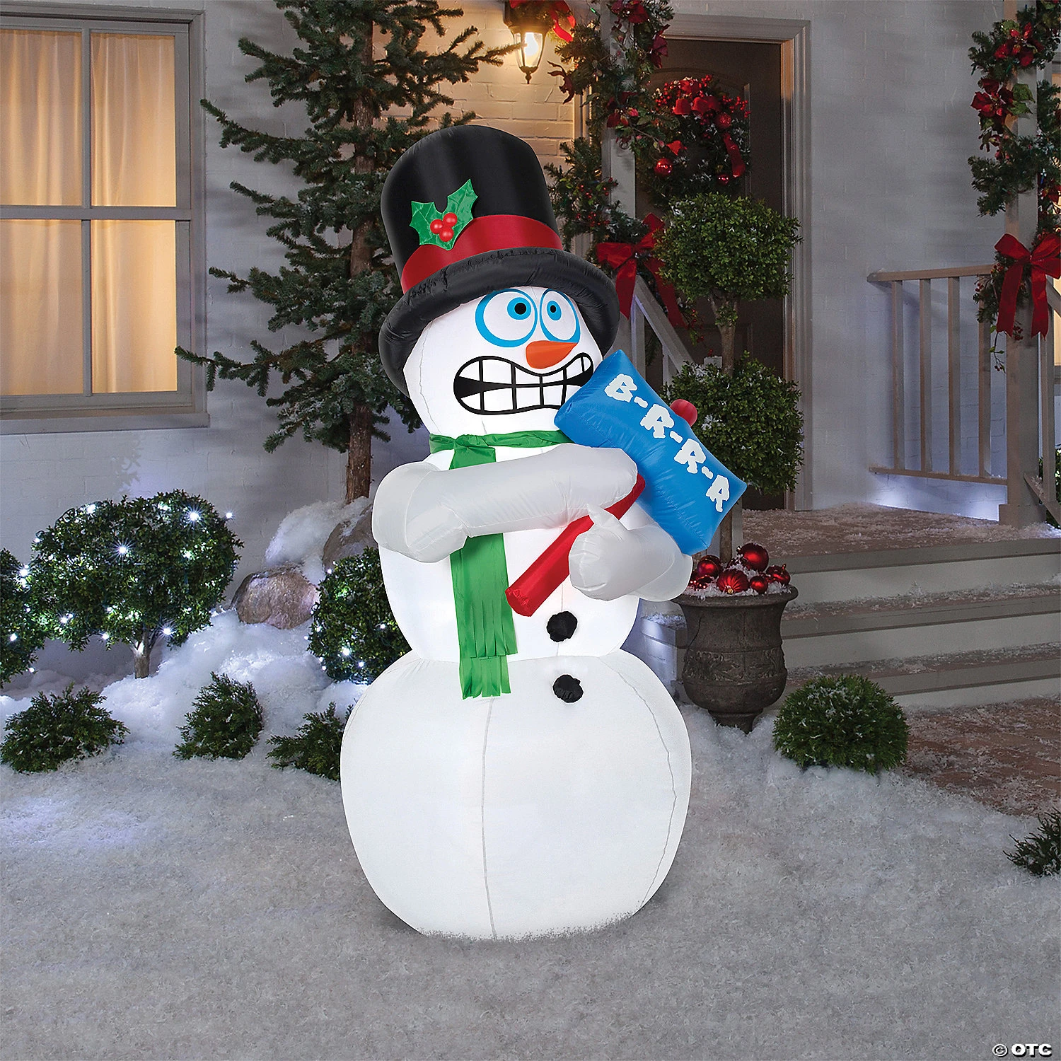 Deck the yard with an animated Airblown Inflatable snowman that’s freezing! Accented with a top hat and “B-R-R-R” sign, this hilarious animated snowman shivers and shakes. Setup is super simple. Just plug it in, stake it down and watch the magic unfold. Display this whimsical holiday decoration as a standalone or combine it with other Airblown characters to create a custom scene. Includes everything needed for easy outdoor setup.