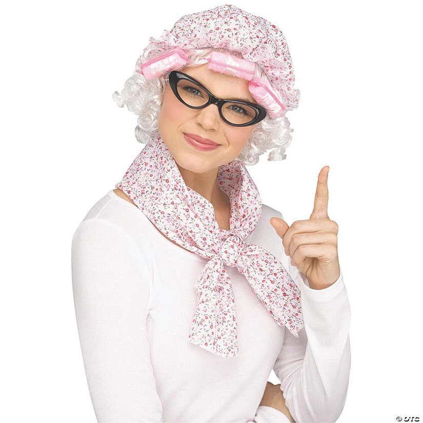 Better speak up when talking to this old woman! Easily transform into an Old Lady or Grandma character with the Grammy kit for adults. The Adult Grammy Instant Kit includes a flowery print mob cap with white curly hair, 3 pink curlers, black 50’s cat eye style glasses and a flowery print neckerchief. Shirt is not included. One size fits most adults. Warning: This is a costume accessory. Not a toy. Keep away from flames!!Includes:• Mob Cap with Hair• 3 Pink Curlers• Black Glasses• Neckerchief This item cannot ship to a P.O. Box. This item may be subject to additional processing days.ITEM IS NOT ELIGIBLE FOR EXPEDITED SHIPPING