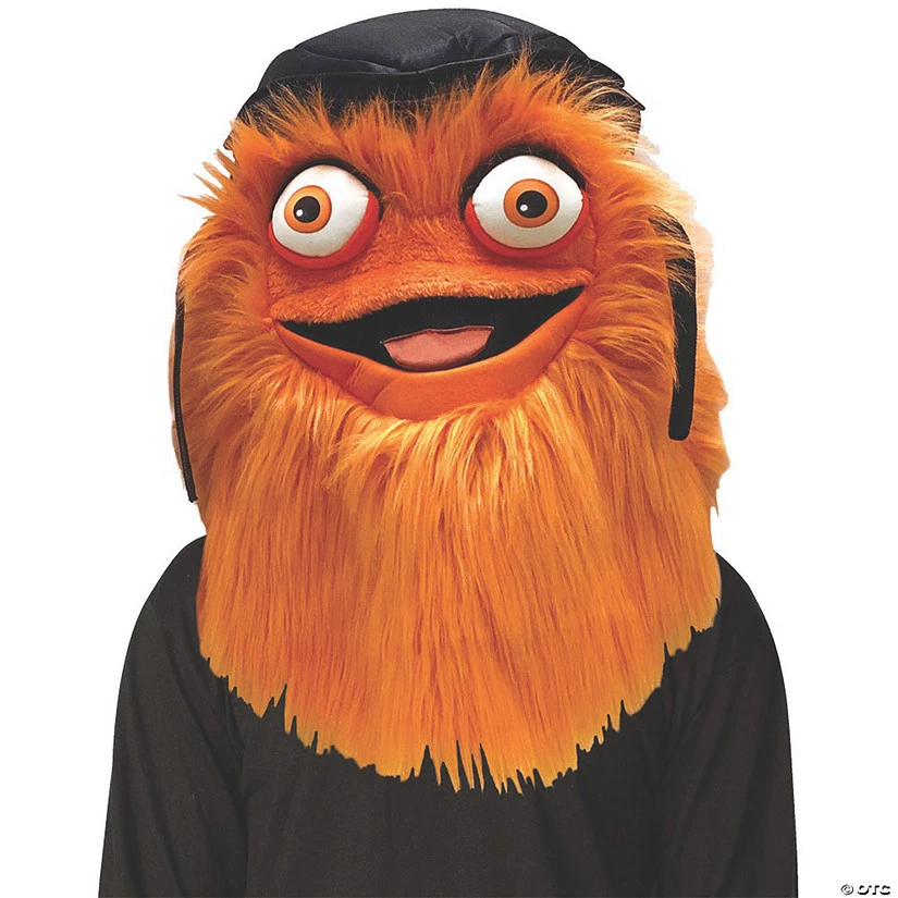 Get “Gritified” with the National Hockey League’s NHL’s Philadelphia Flyers Mascot, the infamous Gritty! Become a Gritizen and represent your favorite hockey team wearing the Gritty Mascot Head. Your favorite Philadelphia Flyer logo is printed on both sides of the headpiece! The Mascot head is lined with sturdy poly foam and accented by a plush poly fur Gritty face and a poly fill stuffing completes the eyes . A breathable mesh mouth was designed for clear visibility. Stuff the top of the poly foam head for a fuller Gritty look. Snug enough to keep you warm on those ice-cold hockey nights! Wear yours to the rink and support your favorite team! Fits Youth through Adult. Officially licensed to Rasta Imposta. Designed in the USA. The name and image of Gritty are trademarks of the NHL Team. NHL. All Rights Reserved. 100% Polyester. Spot clean with cold water only. Do not wash, bleach, dry clean or iron. This item cannot ship to a P.O. Box. This item may be subject to additional processing days.ITEM IS NOT ELIGIBLE FOR EXPEDITED SHIPPING