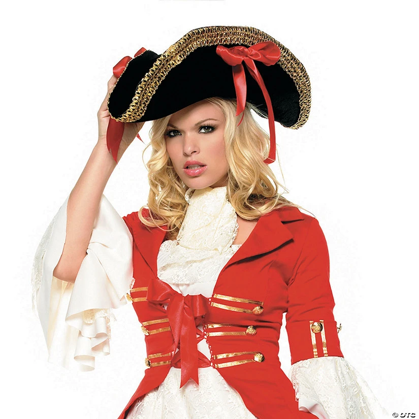 Find all the finishing touches you need to complete your next great Halloween costume idea with our phenomenal selection of Halloween accessories and props! A must-have for your costume, this Black Pirate Hat with Red Ribbons is the perfect way to make your character come alive. Deluxe pirate hat with heavy gold trim and side ribbons. One size fits most Adults. Imported.