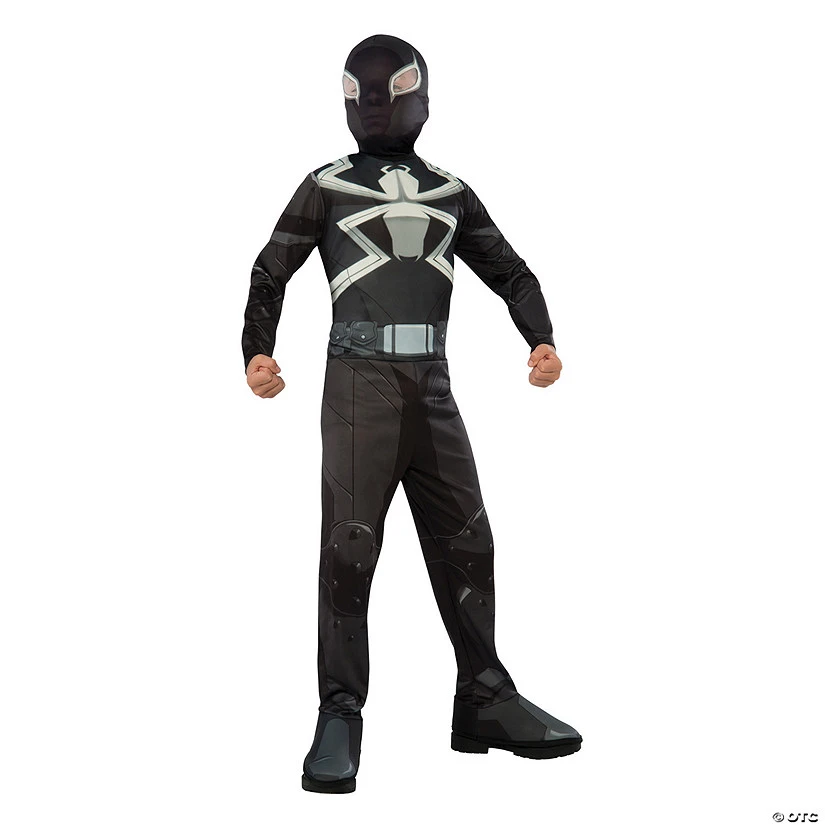 This Halloween your little man can control the venom symbiote and become the dark hero Agent Venom! He can turn the rage of the terrifying ooze-like parasitic creature into super powers and save the galaxy–or at least the candy! Child’s Agent Venom costume includes black jumpsuit with Venom symbol on the chest boot tops and mask with silver mesh eyeholes. 2017 Officially licensed Marvel product. © 2017 Marvel