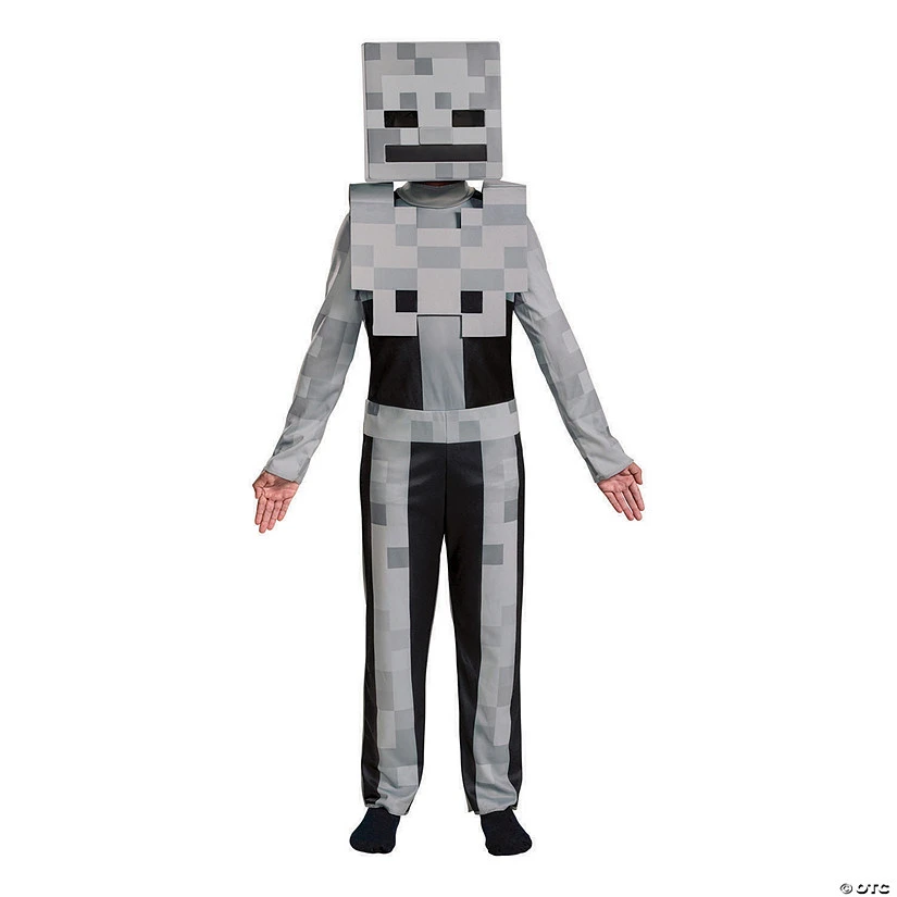Spawn in the darkness dressed in this scary skeleton suit. You’ll look just like an undead mob character from your favorite video game, Minecraft. Grab some friends to go as Creeper, Zombie, Spider and Enderman! The Minecraft Skeleton Classic Child costume features a gray jumpsuit with detachable pixelated chest piece and character half mask. Socks not included. © 2017 Mojang AB and Mojang Synergies AB. MINECRAFT and MOJANG are trademarks or registered trademarks of Mojang Synergies AB.Includes:• Jumpsuit• Mask