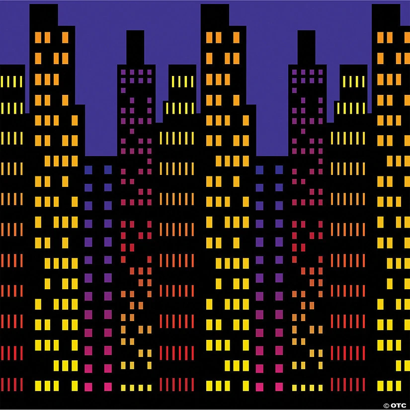 Insta-Theme . A great backdrop for awards night parties or anytime a classy backdrop is needed! Includes: One backdrop that features a scene showing skyscrapers at night. Made of durable plastic. Measures 4 feet x 30 feet. Can be attached to the wall with tape.