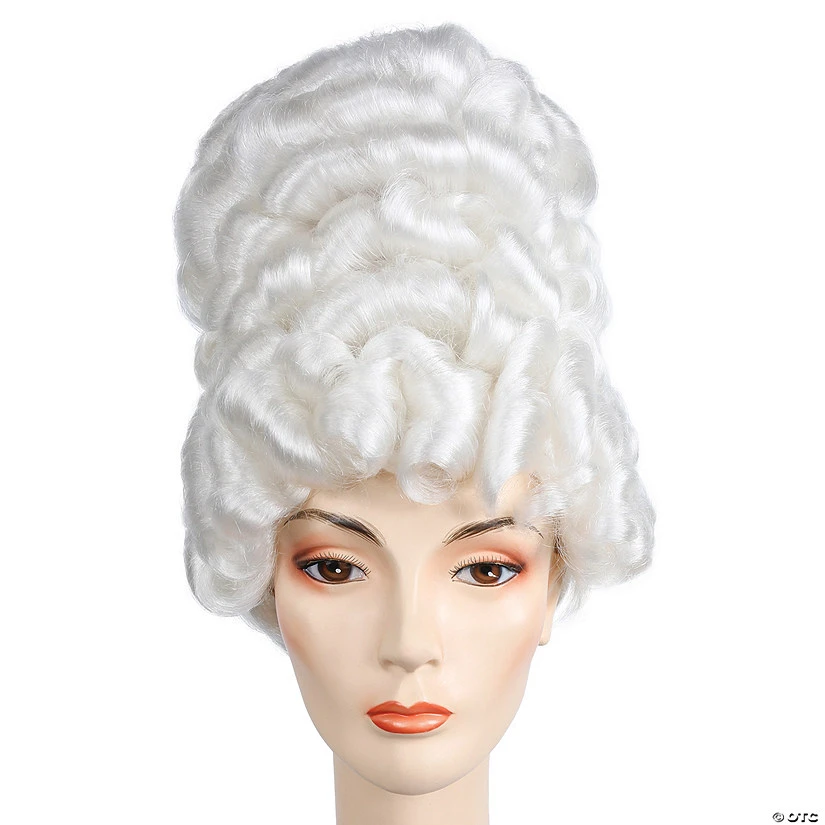 This 18th century wig is perfect for school plays and historical events!Includes: Synthetic fiber high top, 18th century, curly style wigAvailable Size:One size fits most AdultsAvailable Color:WhitePlease note: We cannot accept wigs for return unless they are in their original packaging, unopened, and sealed.