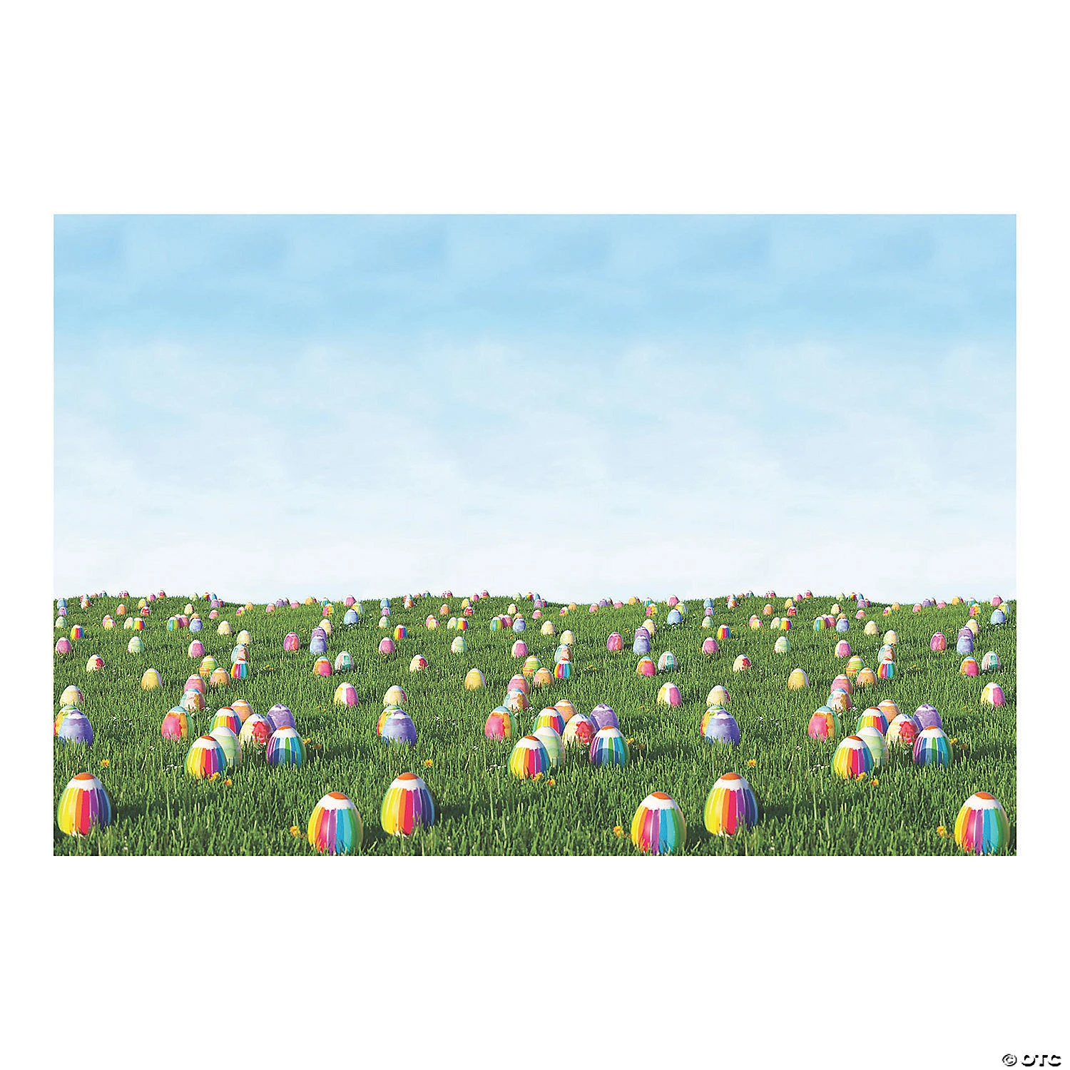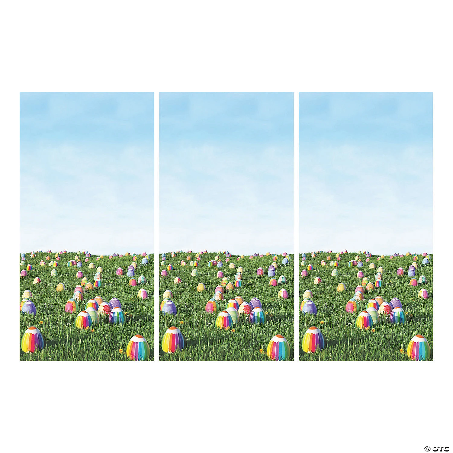 No need to hunt around for Easter decorations! We have everything you need for an Easter egg hunt or party right here on our site! This Easter backdrop depicts painted eggs arranged in plush grass and a bright blue sky. For an event, hang the banner behind the Easter bunny’s chair at a meet-and-greet or use it as a photo booth backdrop. Plastic. (3 pcs. per set) Assembled, 9 ft. x 6 ft. Simple assembly required. © OTC