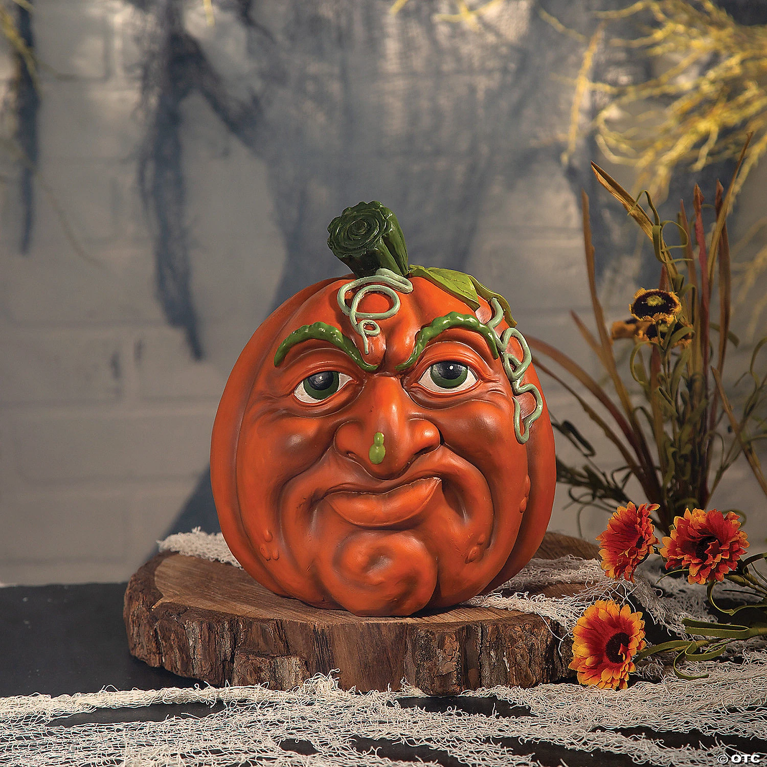 Dress up fall décor outside on your front porch or inside on a tabletop with this entertainingly expressive pumpkin. The frown this resin pumpkin is wearing appears comically bored with the surroundings. Add this unique fall themed decoration to your displays for an ironic touch of amusement. Resin. 7 1/2″ x 8 3/4″ © OTC
