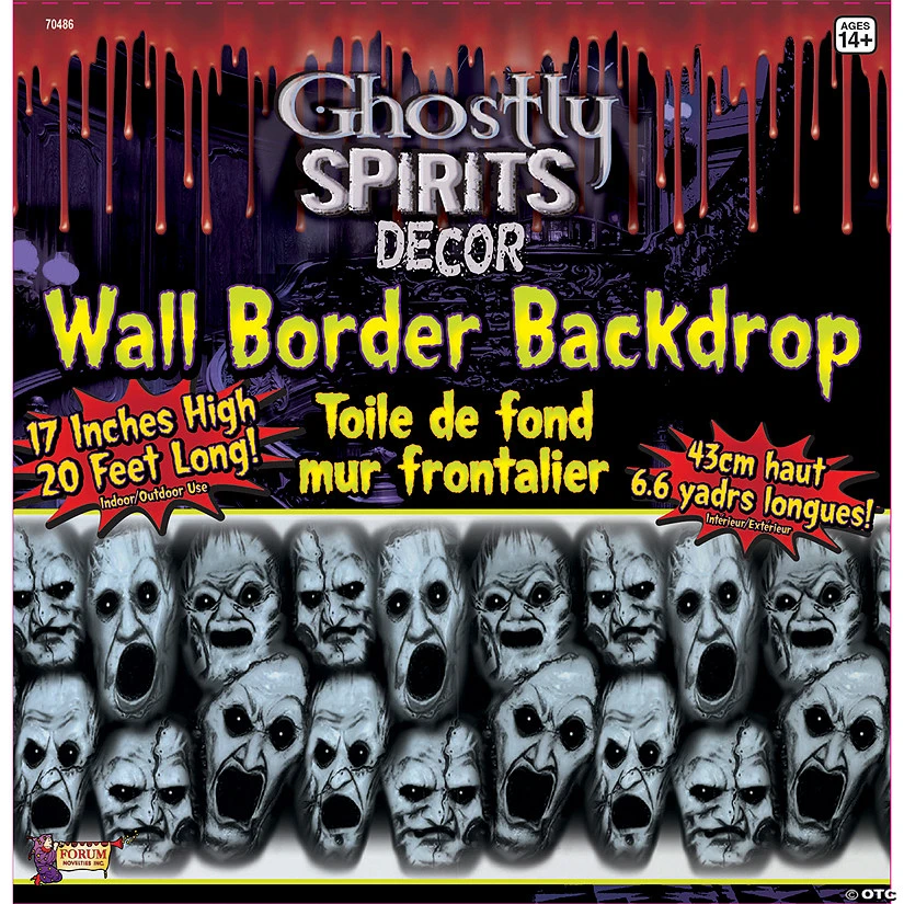 Ghostly Spirits Decor Border Roll. Wall-decor border for your haunted scene! Wall Border Backdrop. Measures 17″ high and 20 feet long.