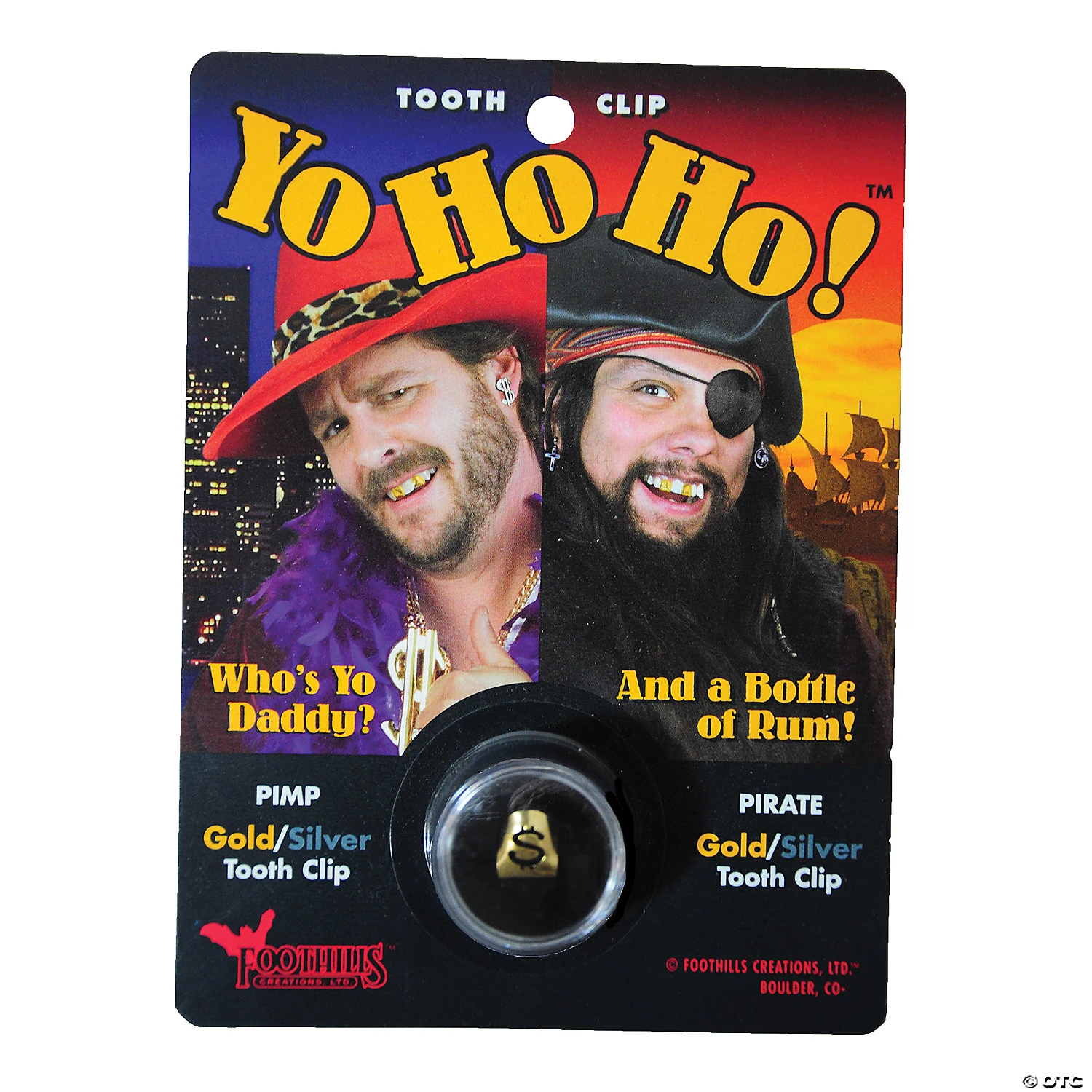 Great accessory for a pimp or a pirate character! Clip-on tooth cover has no metallic taste. Assorted designs. Gold/Silver color.