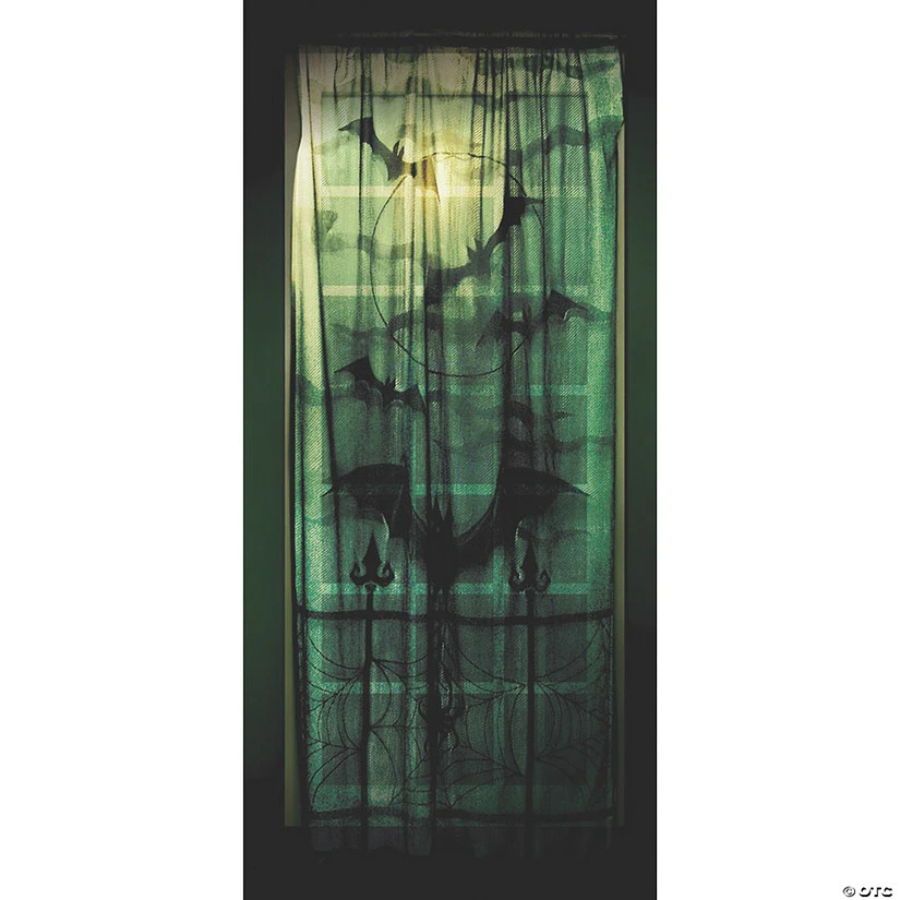 Create wicked-looking windows with ease thanks to this Lace Window Panel Decoration. This unique Halloween decoration features woven polyester lace in a bat and spiderweb pattern. Just let it hang in front of your windows and let your Halloween lights, or even just the light of the moon, do the rest to create a haunting atmosphere you’ll love. 40″ x 84″