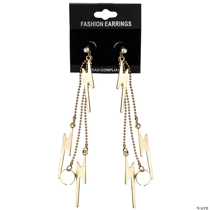 Shock your friends by wearing these beautiful lightning earrings! Includes: One pair of chained lightning earrings. Available size: One size fits most.