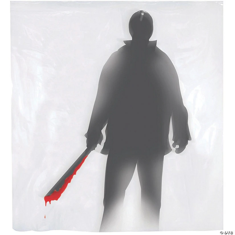 When creating a haunted house, don’t spare any room – not even the bathroom! This Machete Killer Shower Curtain Decoration makes a fast and easy first step to create a bone-chilling bathroom no one will want to visit this Halloween season. This shower curtain features a man holding a bloody machete. One size fits most showers.