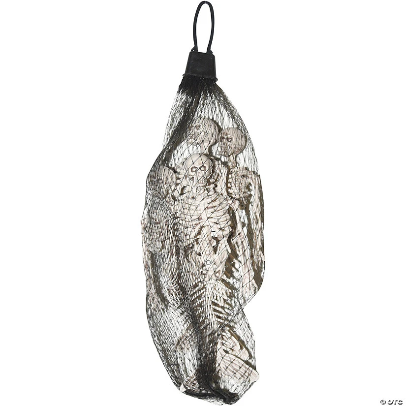 Unique Halloween Decor! Plastic mermaid style skeletons, 4 mermaid skeletons per pack, offered in black net bag. Each mermaid skeleton measures 6″ tall.