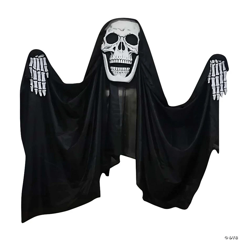 Haunting Reaper Curtain decoration is cloaked in a lengthy black robe that drapes down off its lifeless body!Place it above windows to use as a curtain or hang above doors and entryways to section off rooms. The robe drapes over 9 feet tall and issuitable for large as well as small spaces. Try it out for yourself and transform your space with an undead nightmare!
