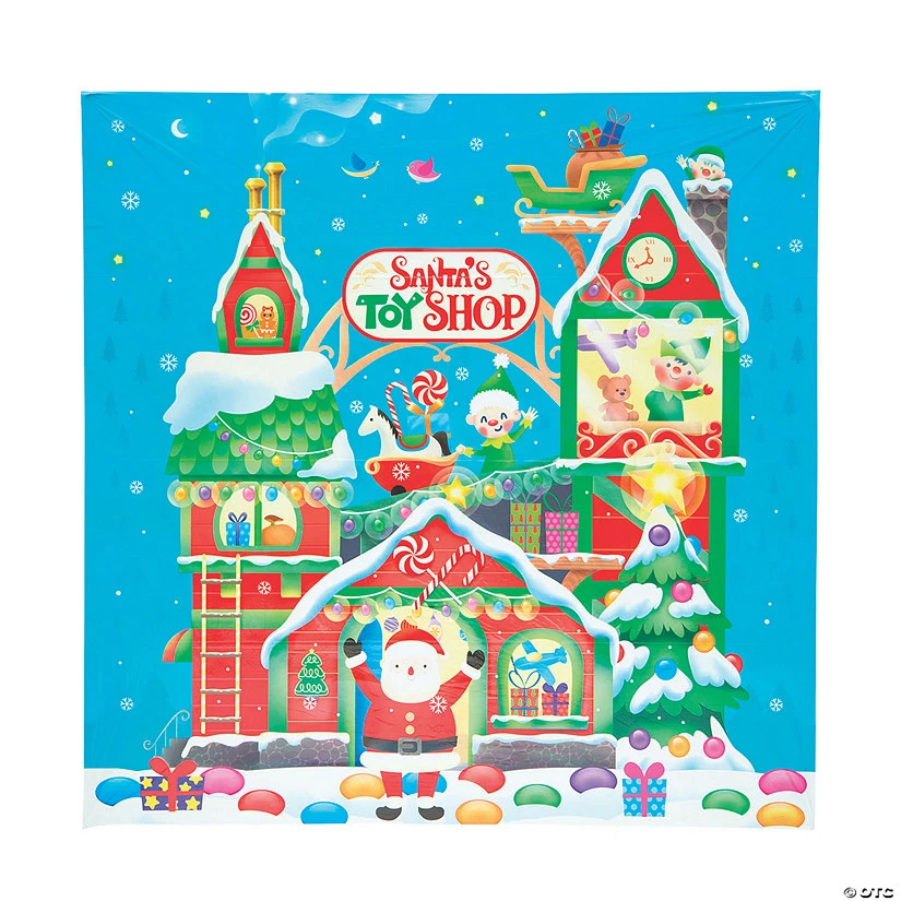 Take your celebration to the North Pole! A colorful and oh-so-cute addition to Christmas party décor, this backdrop shows Santa and his elves waving from their famed toy shop. Whether you’re hosting a seasonal soirée for kids or just looking to create a DIY photo booth backdrop, this merry scene is a must-have. Who says the tree should be the only thing decorated this December? Now, your wall can get in on the fun too! Plastic. 6 ft. x 6 ft.