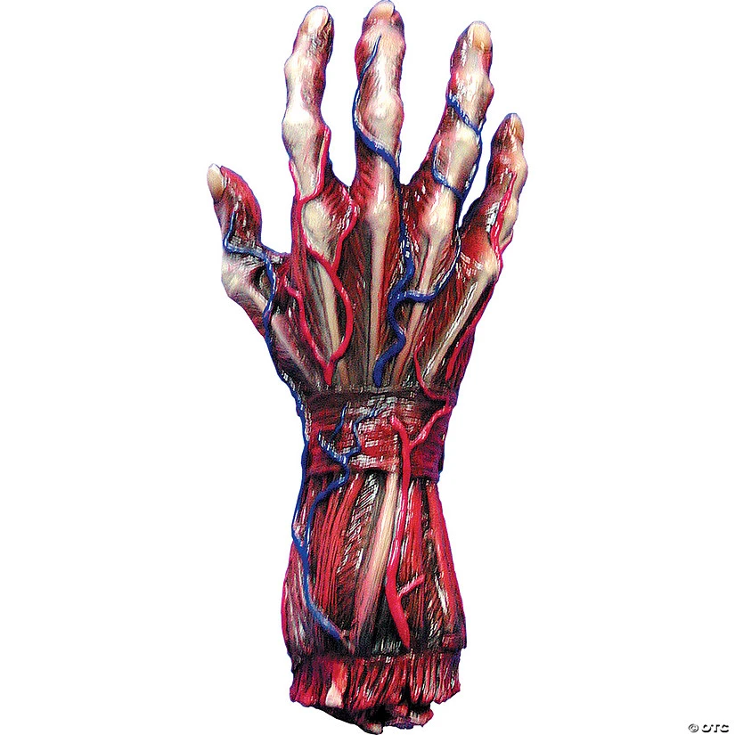 Realistic foam-filled latex rubber prop. Victim appears to, have had his skin removed revealing muscle tissue and, veins.