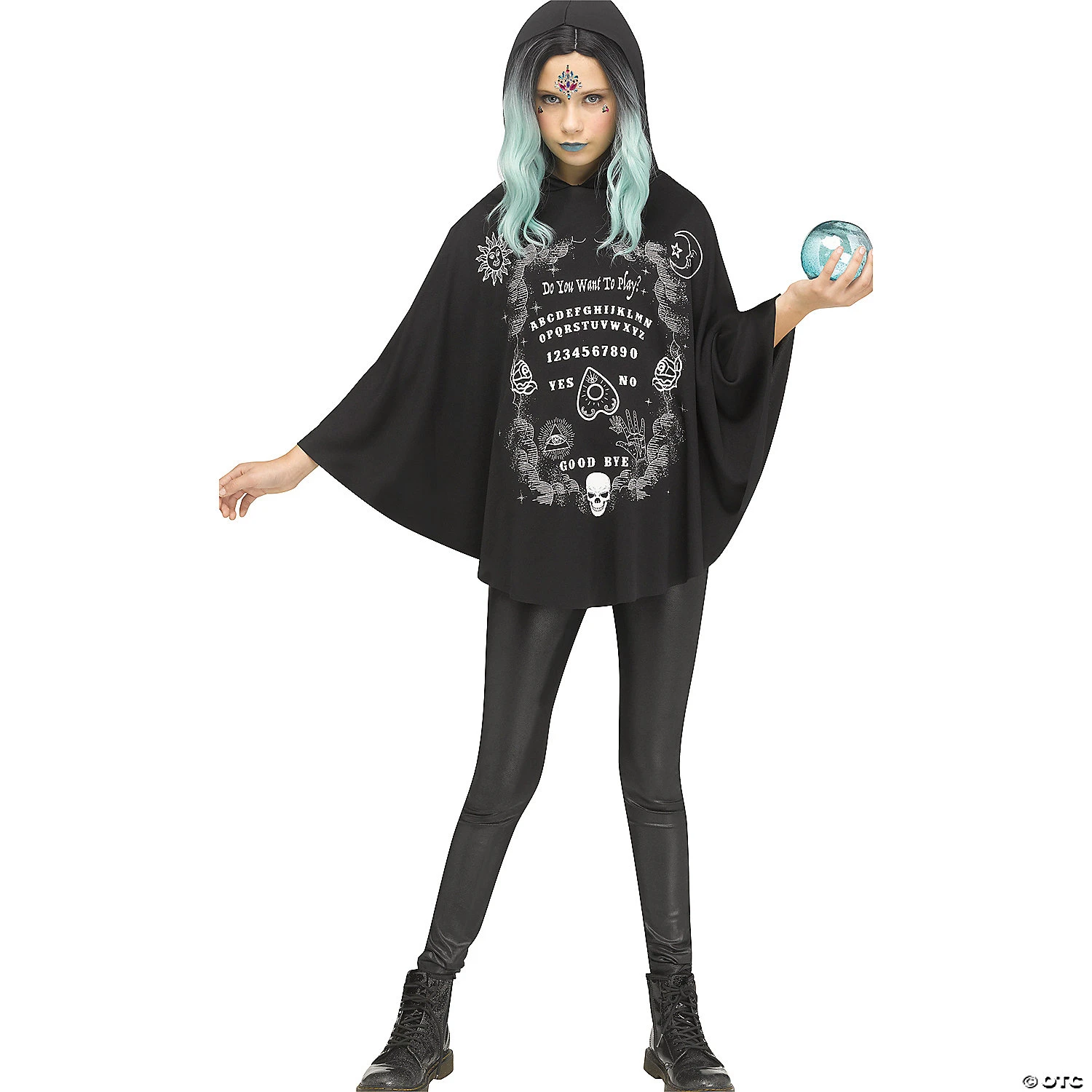 Hooded Spirit Board Child Poncho Dear Great Aunt Mable can you here us?This hooded Child Poncho is fun for any tween or teen looking to be in the “spirt”. This over the head poncho has the design of a Spirt board that extends when you raise your arms.This pairs well with leggings, shorts, or skinny jeans. (not included) add a long sleeve shirt to polish off the look.One size fits most child size 4-14Hand wash/ air dryEasy to accessories Special Shipping Information: This item ships separately from other items in your order. This item cannot ship to a P.O. Box. This item may be subject to additional processing days.