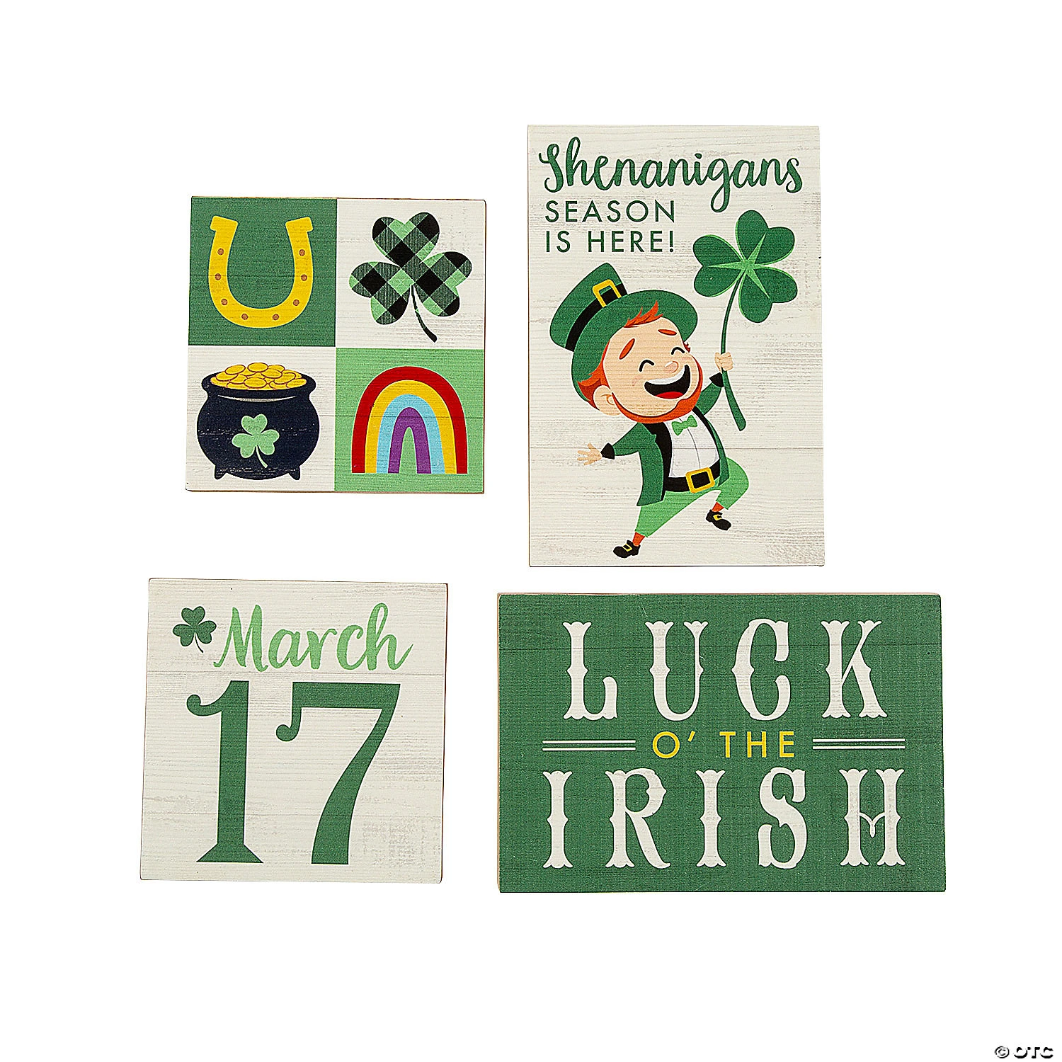 Create a festive flair to your St. Patrick’s Day celebrations with this set of wooden blocks! Perfect for displaying at home or in the office, these white and green blocks feature lucky symbols and seasonal sayings that are sure to delight anyone who sees them. May the luck of the Irish be with you! Wood. (4 pcs. per unit) 4″ – 6″ x 6″ – 4″ © OTC