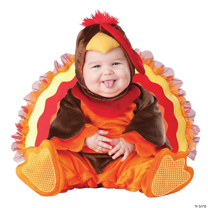 It’s time to talk turkey. The fall holidays are coming and you want a special costume idea for your little one to dress up in. Your little butterball will be absolutely adorable in this Lil Gobbler infant costume for kids. Just be careful no one tries to serve your little turkey for dinner. The lined zipper jumpsuit comes with snapped legs for easy changes. The hood comes with a plush tuft and the tail feathers are detachable. The pull-on booties have a slip resistant sole. This costume idea is appropriate for both Halloween and Thanksgiving. Booties are for indoor use only. Includes:• Lined zippered jumpsuit with leg snaps• Hood with plush tuft and detachable tail feathers• Slip-on booties with skid resistant bottoms Imported