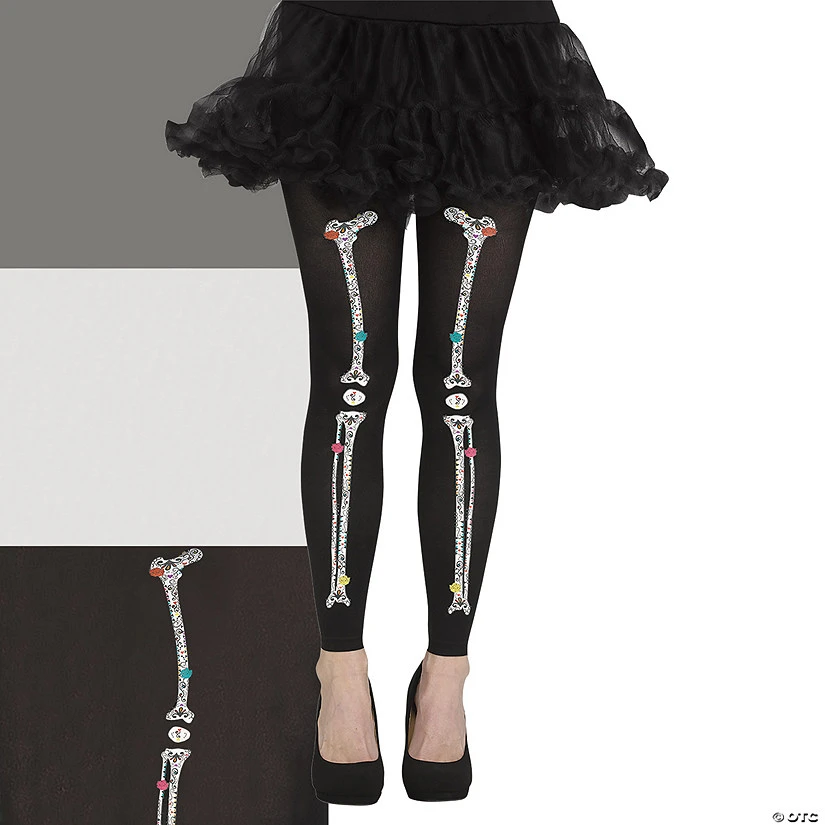 Women’s footless tights featuring leg bone graphic.